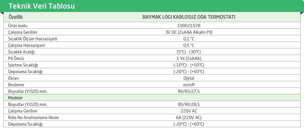 BAYMAK LOGI KABLOSUZ ODA TERMOSTATI